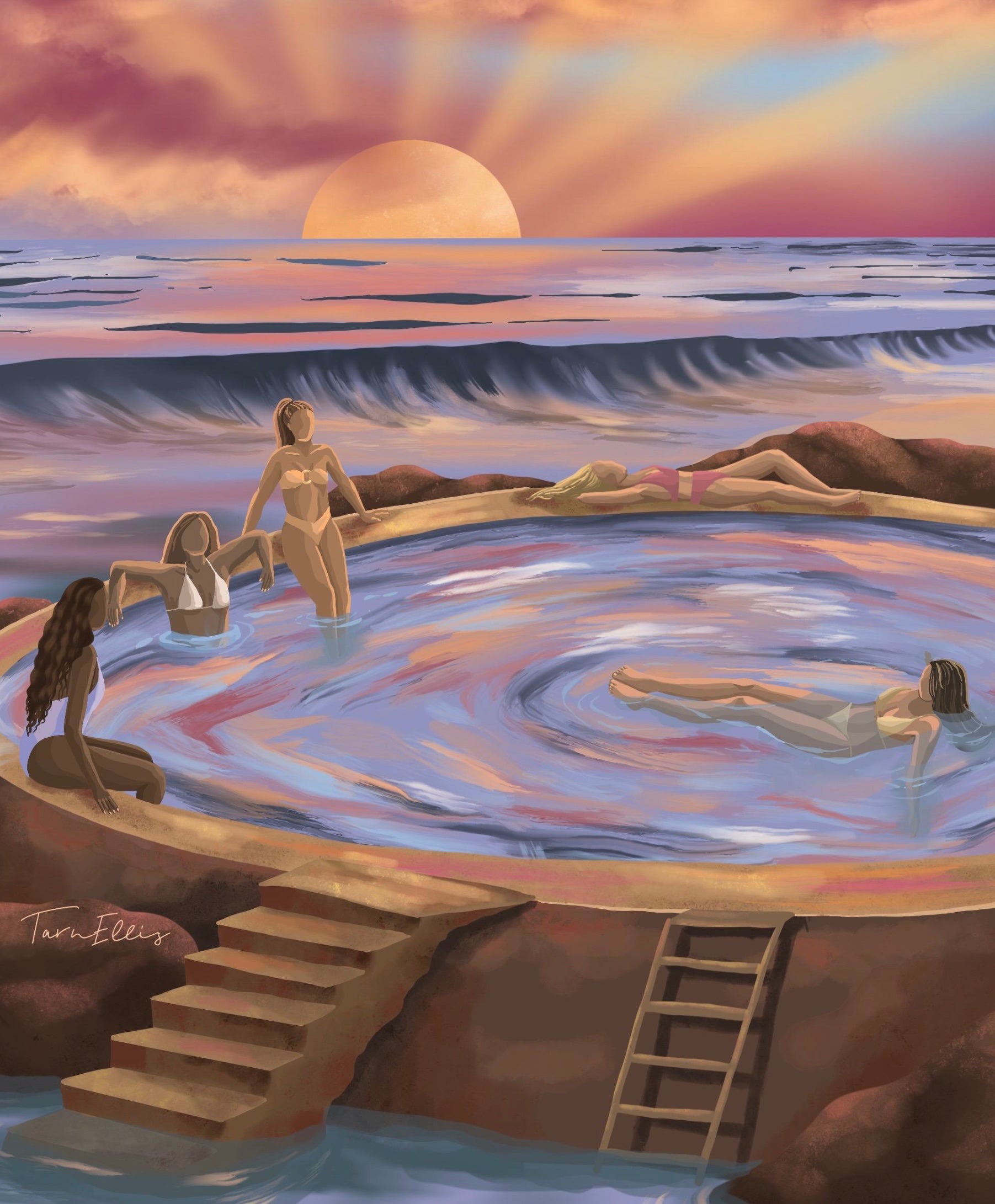 Swimming at sunset in the ocean pool. A perfect way to end a summers evening.